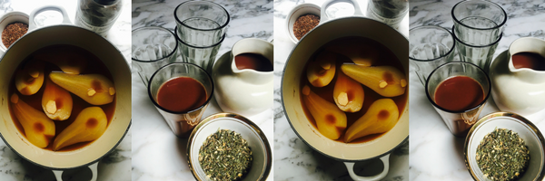 You will need: 3-4 pears, 2 Dr Jackson Expedition tea bags with paper tags removed and strings still attached (or use loose tea and strain the liquid before adding to the pears), 150g honey (or agave syrup), 20g fresh ginger, peeled and thinly sliced.